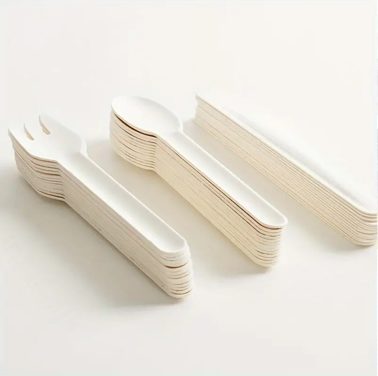 Made from natural pulp, fully biodegradable and compostable, ensuring no environmental pollution after disposal. An ideal alternative to plastic cutlery.Features a food-safe, waterproof coating, making it safe for direct contact with hot and cold foods. Provides excellent resistance to water and oil, ensuring a secure and clean dining experience.Surfaces can be printed with eco-friendly inks to support custom logos, colors, and patterns, perfect for businesses seeking to enhance brand image or for personalized family use.